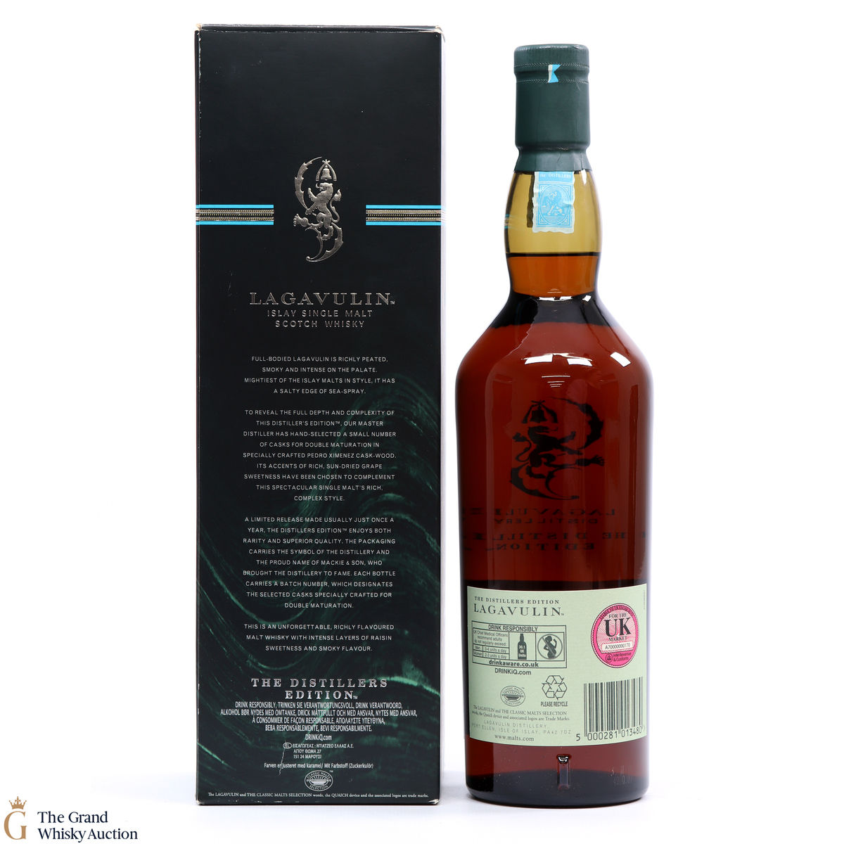 This Lagavulin Distillers Edition was distilled in 1997 before being bottled in 2013. This 16-year-old (ish) single malt whisky of the Classic Malts Selection was matured twice in European Pedro Ximenez Sherry oak casks - these give the whisky more fruity and syrupy character.