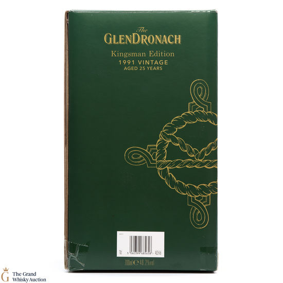 GlenDronach partnered with 20th Century Fox to mark the release of the "Kingsman The Golden Circle" movie with The GlenDronach Kingsman Edition 1991 Vintage in 2017. Fully matured in the finest of sherry casks this bottle is one of 2137 bottles produced.