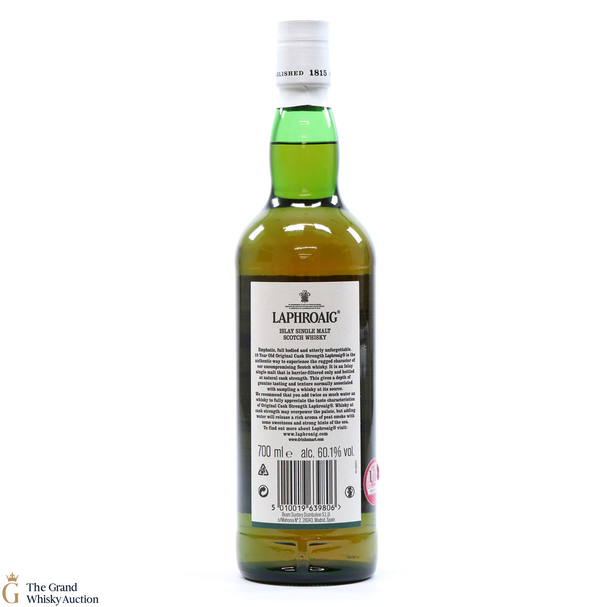 This bottling is from batch 012, original cask strength bottling of the medicinal 10 year old from Islay's bestselling distillery, Laphroaig. In making Laphroaig, malted barley is dried over a peat fire. The smoke from this peat, found only on Islay, gives Laphroaig its particularly rich flavour. This release was bottled at 60.1% in February 2020.