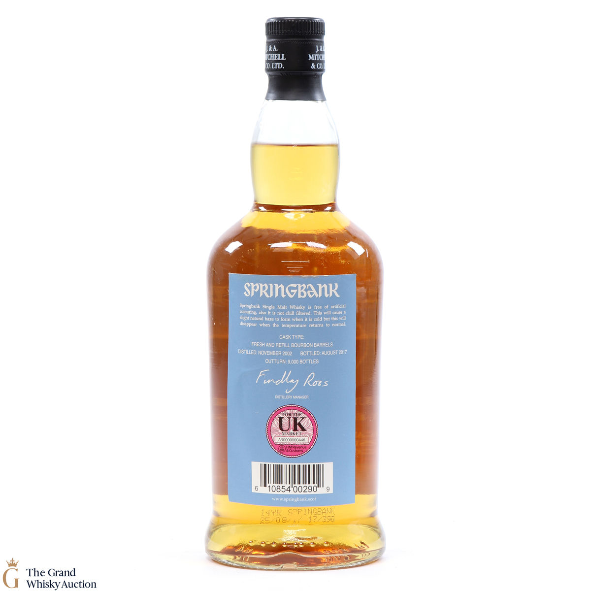 Due to the various ages of bottles and their seals, the condition of liquid is at the buyer's discretion and no claim can be lodged against failure/leakage in transit. Loss and breakage cover is available at 3% of the hammer price as standard. If the lot is not insured, no claim can be lodged against the courier or The Grand Whisky Auction for breakage or loss in transit.