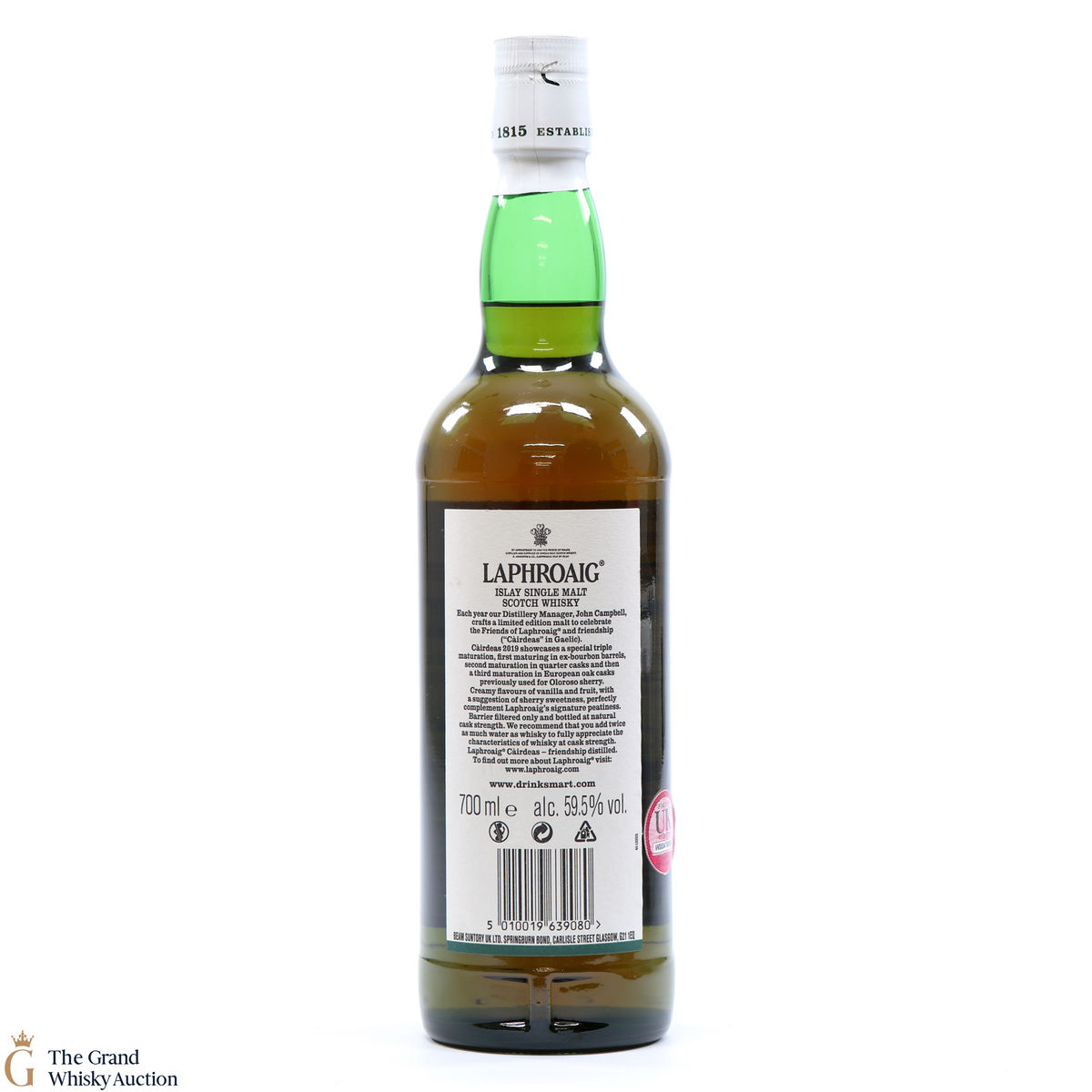 Cairdeas, Gaelic for 'friendship', is an annual bottle release by Laphroaig for their Friends of Laphroaig members. This Càirdeas Triple Wood Cask Strength was released for Fèis Ìle 2019. It has had a special triple maturation; first matured in ex-bourbon barrels, then in quarter casks and finally in European oak casks which previously held oloroso sherry.