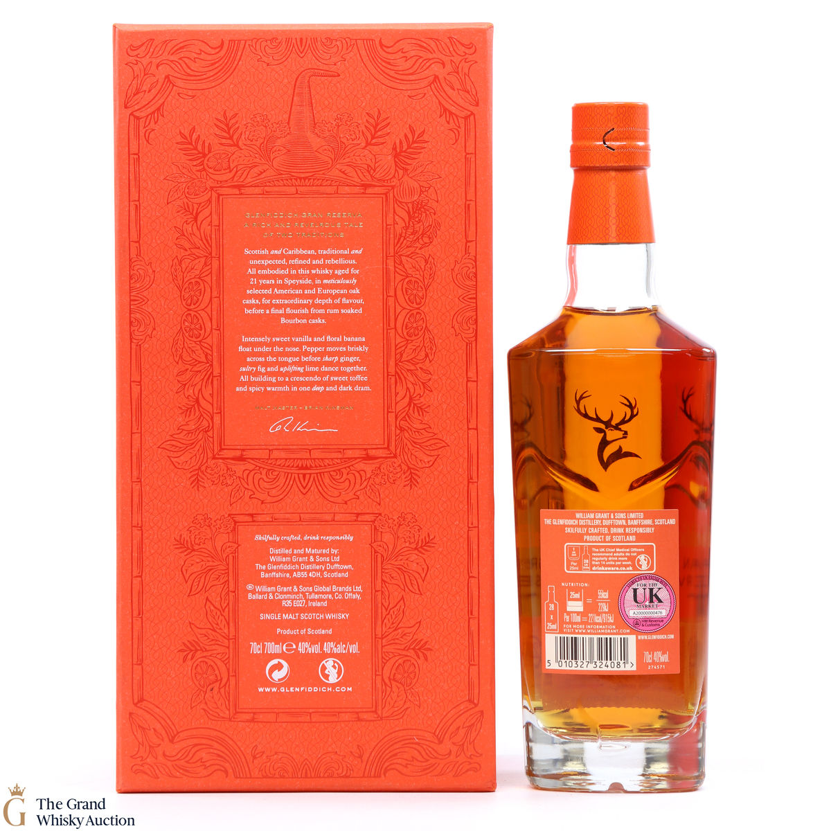 The Glenfiddich Gran Reserva has matured and mellowed in American Oak Casks for 21 years before been finished in previously used Caribbean Rum casks for 4 months.
