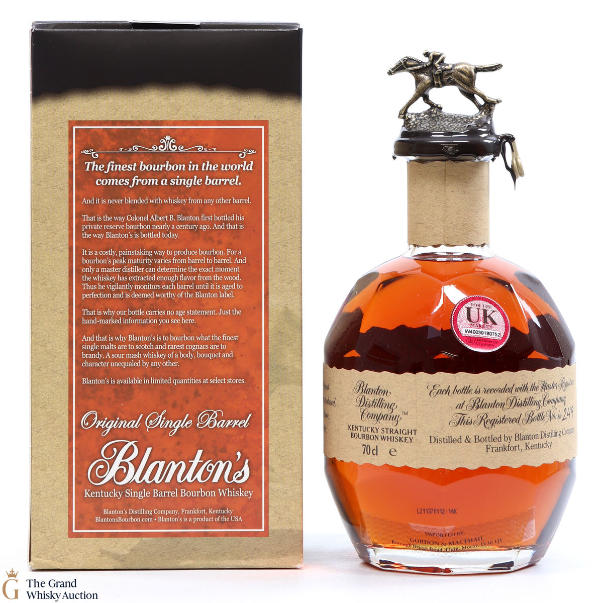 Due to the various ages of bottles and their seals, the condition of liquid is at the buyer's discretion and no claim can be lodged against failure/leakage in transit. Loss and breakage cover is available at 3% of the hammer price as standard. If the lot is not insured, no claim can be lodged against the courier or The Grand Whisky Auction for breakage or loss in transit.