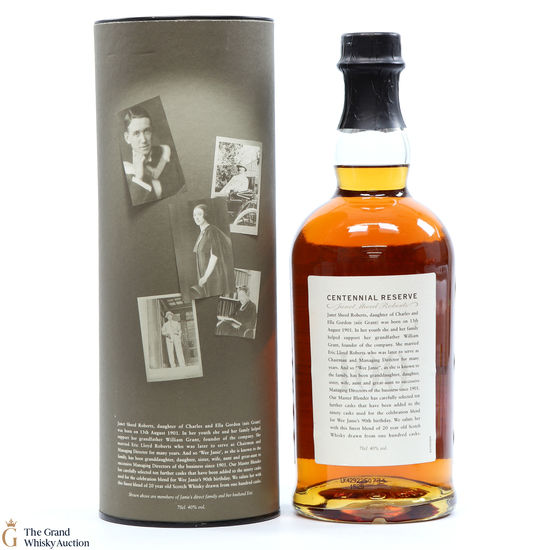 The bottling celebrates the 100th birthday of Janet Sheed Roberts on the thirteenth of August 2001. She was the granddaughter of William Grant of Glenfiddich.