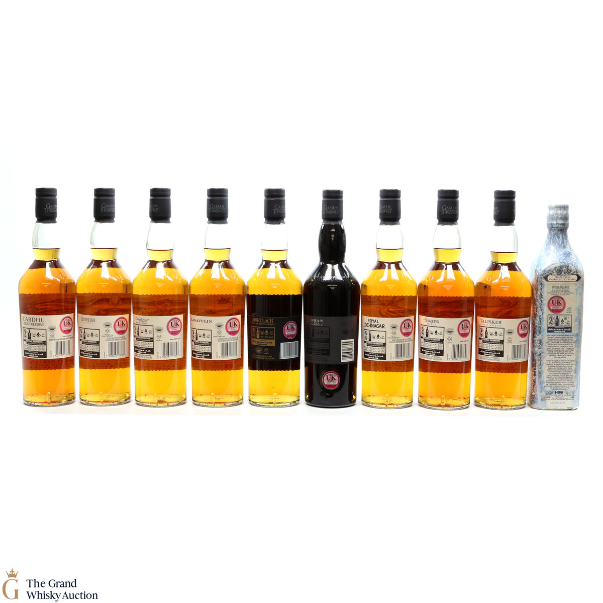 Game of Thrones series plus Johnnie Walker White Walker Game of Thrones edition, Song of Fire and Mortlach, Six Kingdoms edition. This lot includes 10 x 70cl.