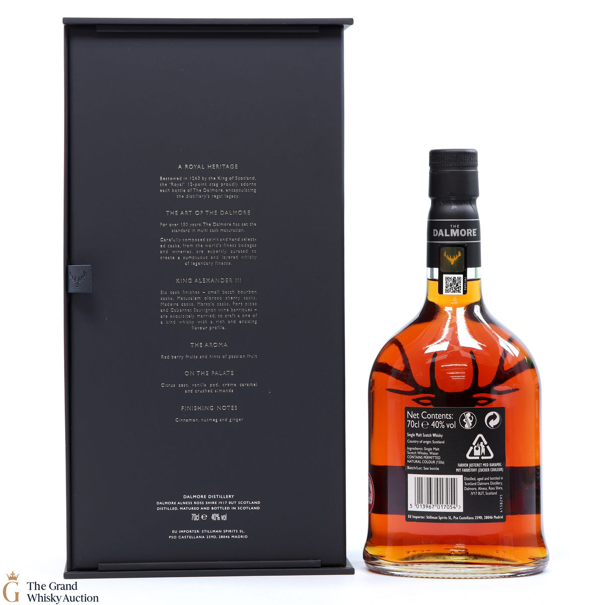 To make The Dalmore King Alexander III, Master Distiller Richard Paterson specially selected 6 casks of differently aged Dalmore malts matured in wine, Madeira, sherry, marsala, Kentucky bourbon and port casks. A remarkable feat of blending crafted to honour the act of saving Scotland's King in 1263. It is a rich, fruity Highland single malt.