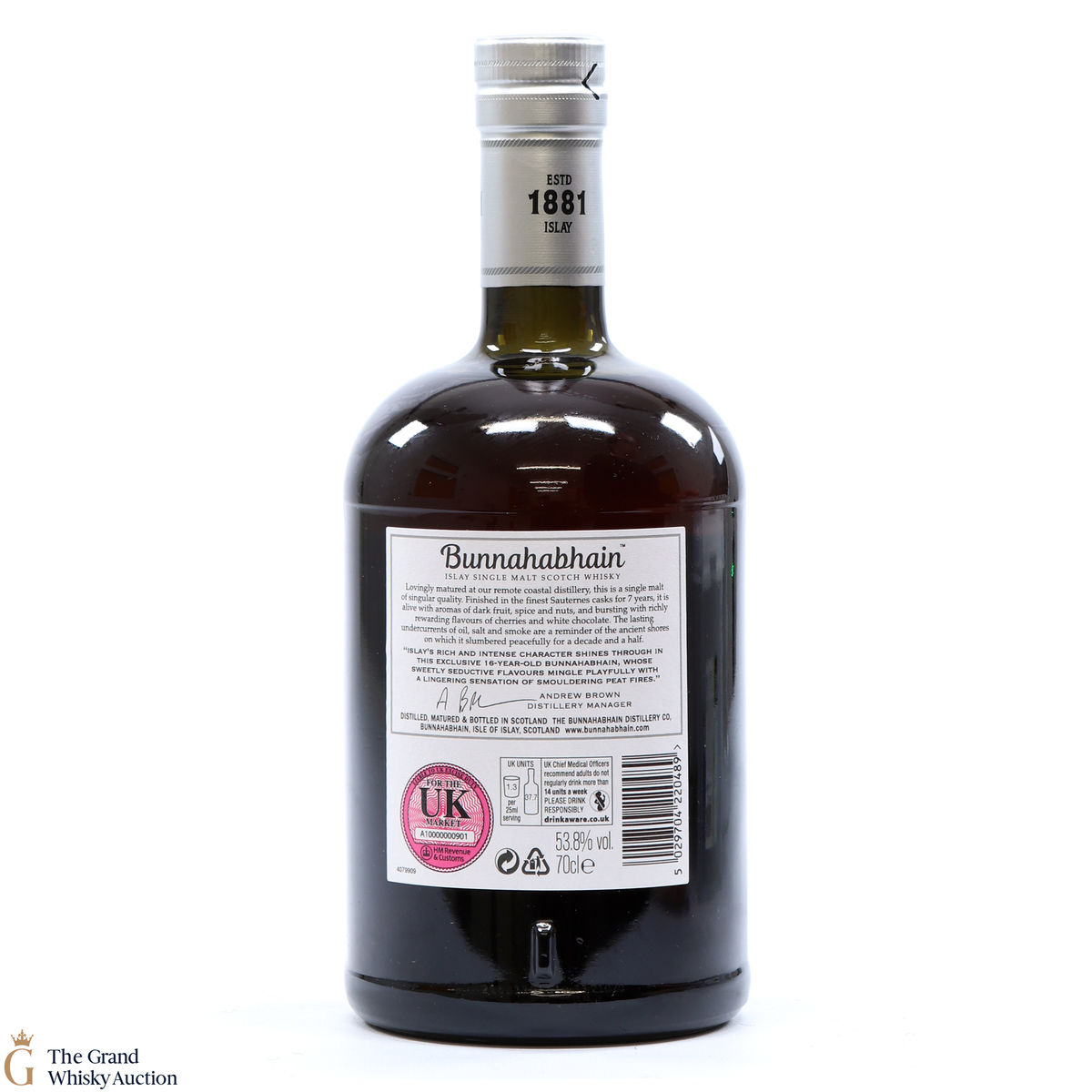 Buyers delivering this bottle to a Non-UK will pay [%% bidValueExVatPlusCommissionWithVat | multi_currency %%] (Hammer price + 12.5% buyer commission + 20% VAT on the commission).