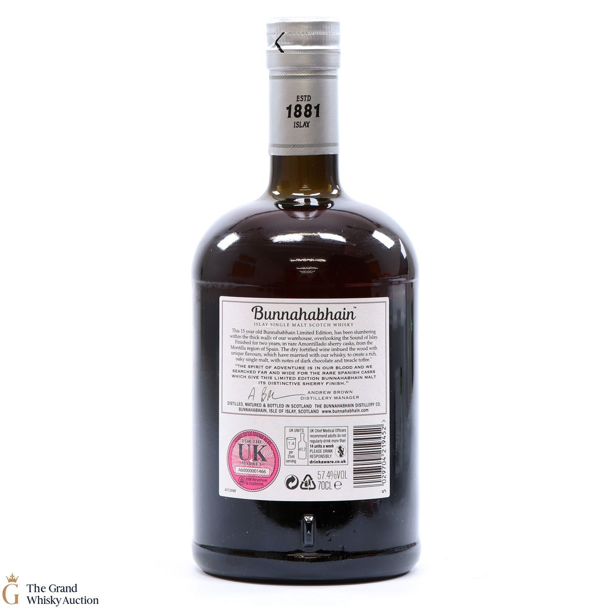 This is a 2019 distillery exclusive from Bunnahabhain Distillery. This Amontillado Cask Finish limited edition started life on the 20th of February 2003 in refill hogsheads before being transferred to Amontillado sherry hogsheads on the 26th of February 2016 where it spent two more years maturing in Bunnahabhain's coastal warehouses.