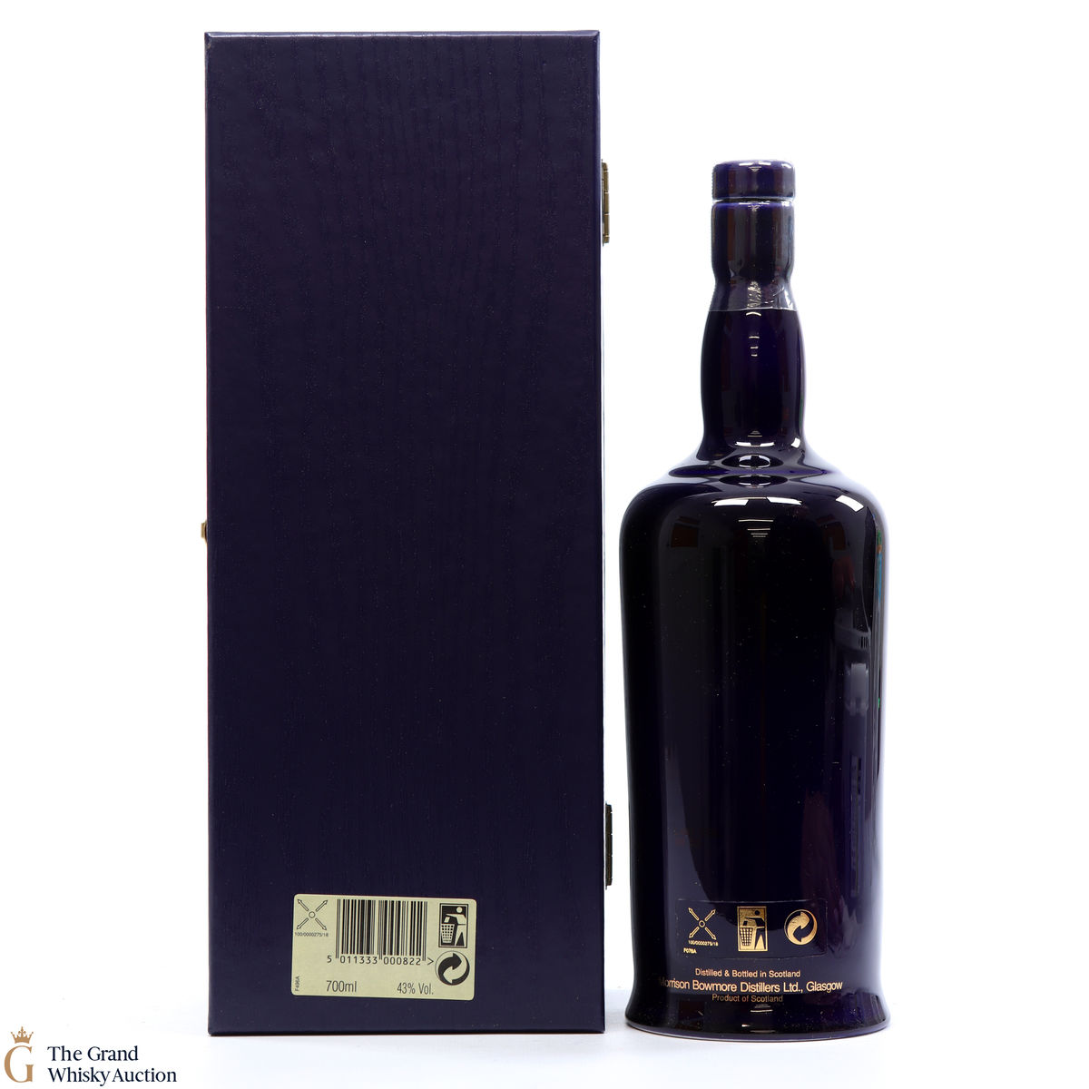 A stunning 25 year old single malt bottling from Bowmore. It comes in a rare blue ceramic bottle featuring two gulls and with a beautiful, lined presentation case to celebrate one of the legends of Bowmore. The Gulls Legend is printed inside the lid of the presentation case: