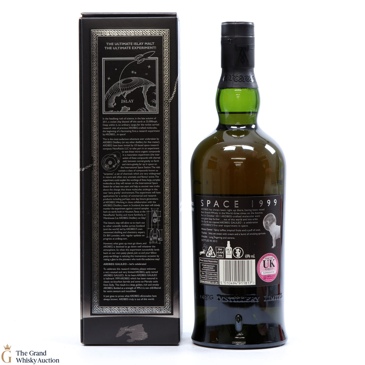 Ardbeg Galileo was one of 2012's most eagerly awaited releases. It is made up from casks distilled in 1999, some of which spent their full term of maturation in casks that previously held Marsala wine. This gives sweet tropical fruit flavours to the malt. Galileo's concept is in celebration of the well-publicised experiment whereby small quantities of Ardbeg were sent into space at the end of 2011 to see how they mature in zero gravity.