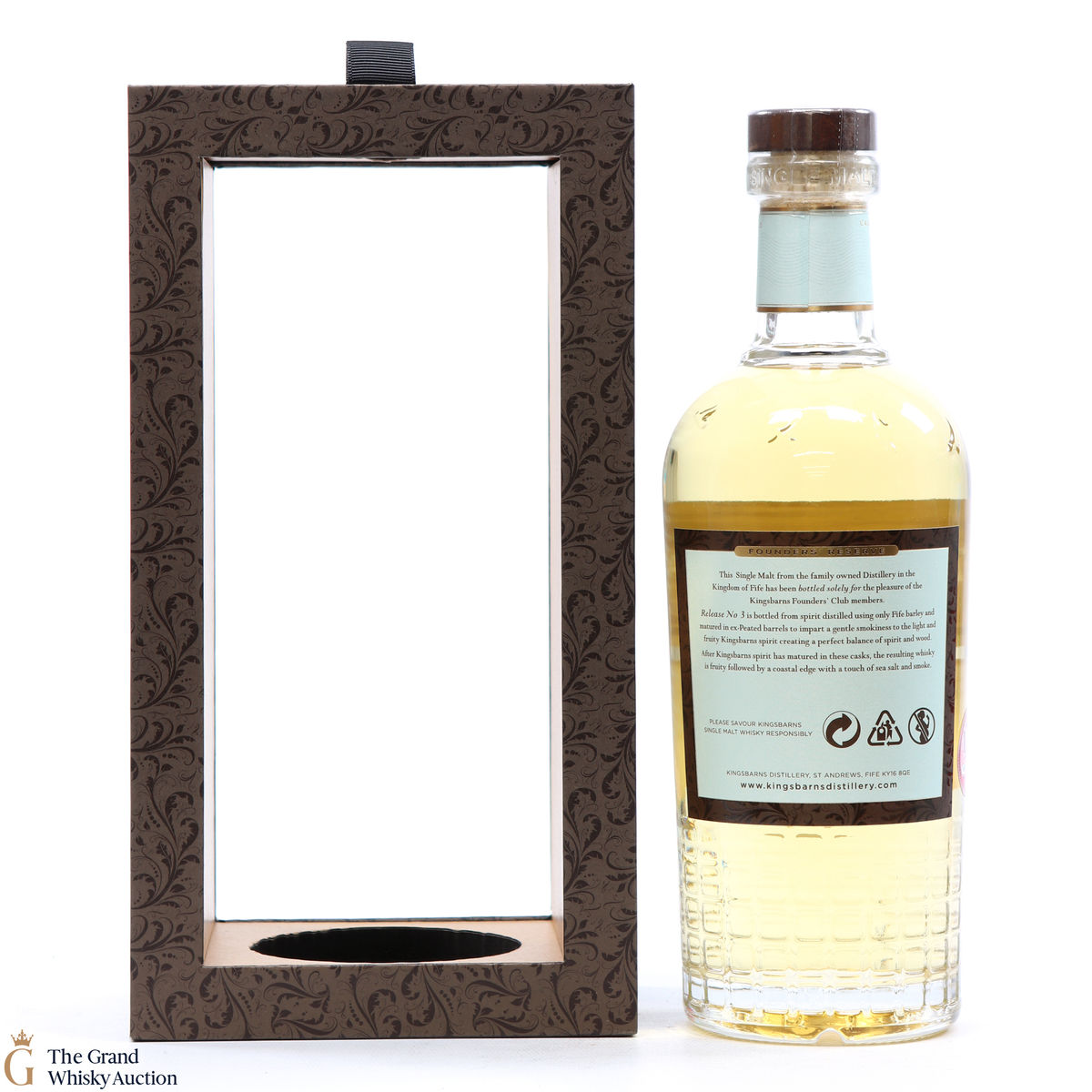 Aged exclusively in 100% ex-peated barrels, and bottled at a cask strength of 61.6%. This bottling was available exclusively to members of the Kingsbarns Distillery Founders’ Club. This is one of 3000 bottles produced.