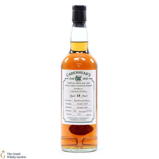 Distilled in 2001 at an undisclosed distillery in Speyside and bottled by Cadenhead's. The annual Campbeltown Whisky Festival couldn't take place due to Covid19, so, they did a Virtual Open Day and this was one of the open day. This release was matured in a combination of bourbon and sherry casks for 18 years - this is one of just 552 bottles released at a strength of 52.3% abv.