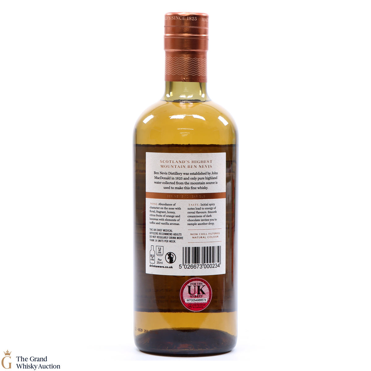 Due to the various ages of bottles and their seals, the condition of liquid is at the buyer's discretion and no claim can be lodged against failure/leakage in transit. Loss and breakage cover is available at 3% of the hammer price as standard. If the lot is not insured, no claim can be lodged against the courier or The Grand Whisky Auction for breakage or loss in transit.