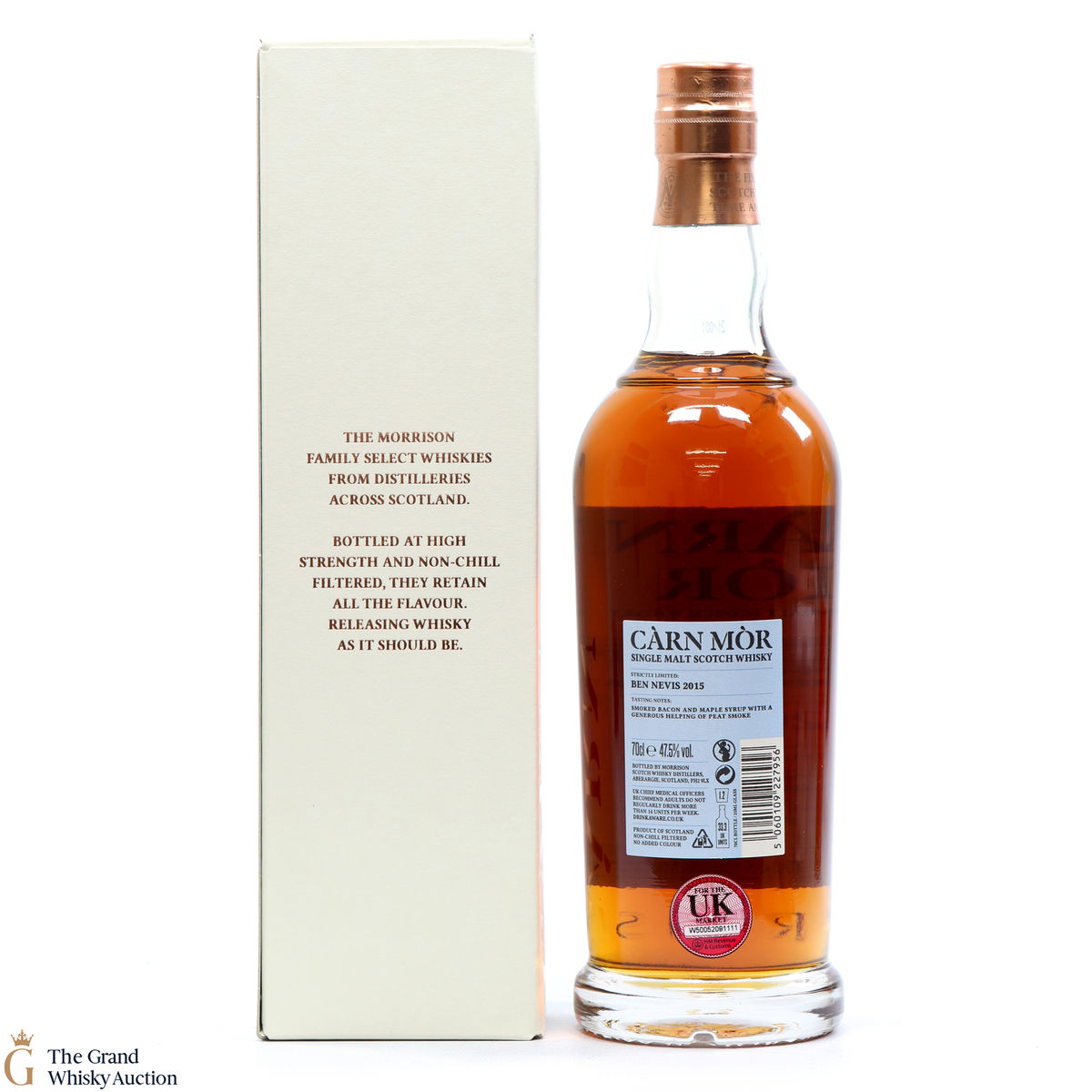 This limited edition bottle of single malt was distilled at Ben Nevis distillery and bottled by Carn Mor. Distilled in 2015, this whisky was held in Sherry Hogheads and bottled after 6 years in 2021.