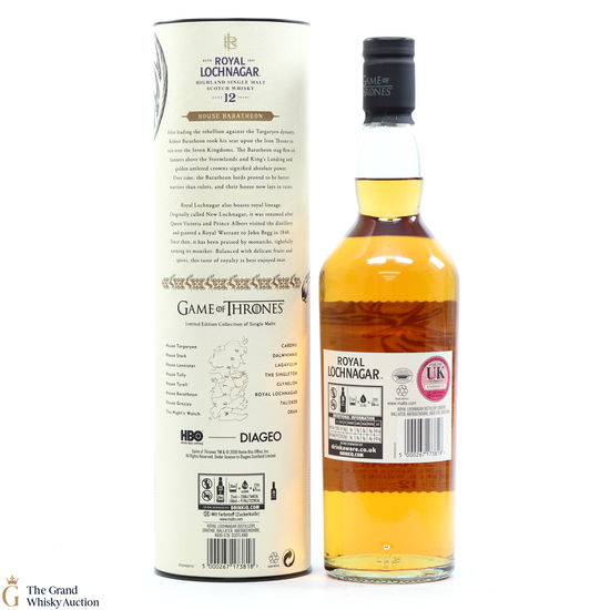 This is a limited-edition 12 year old single malt from Royal Lochnagar and it is part of Diagio's 2018 collaboration with HBO. Each single malt in the series relates to the land of houses of the Game of Thrones television series. The Royal Lochnagar bottle is decorated with a rampant black Stag, the sigil of House Baratheon that once flew on banners above the Stormlands and King’s Landing signifying absolute power.
