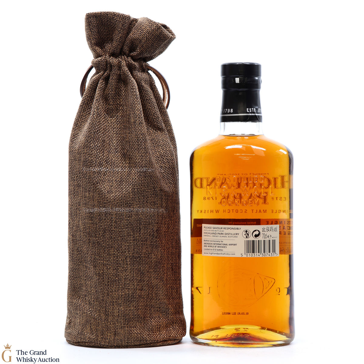 This Highland Park Single Cask Edition was bottled in 2018 exclusively for Aberdeen International Airport and World of Whiskies. With just 610 bottles available, the 12-year-old single malt whisky is drawn from an intriguing mix of American/Spanish oak cask and bottled at a cask strength 64.4% ABV.