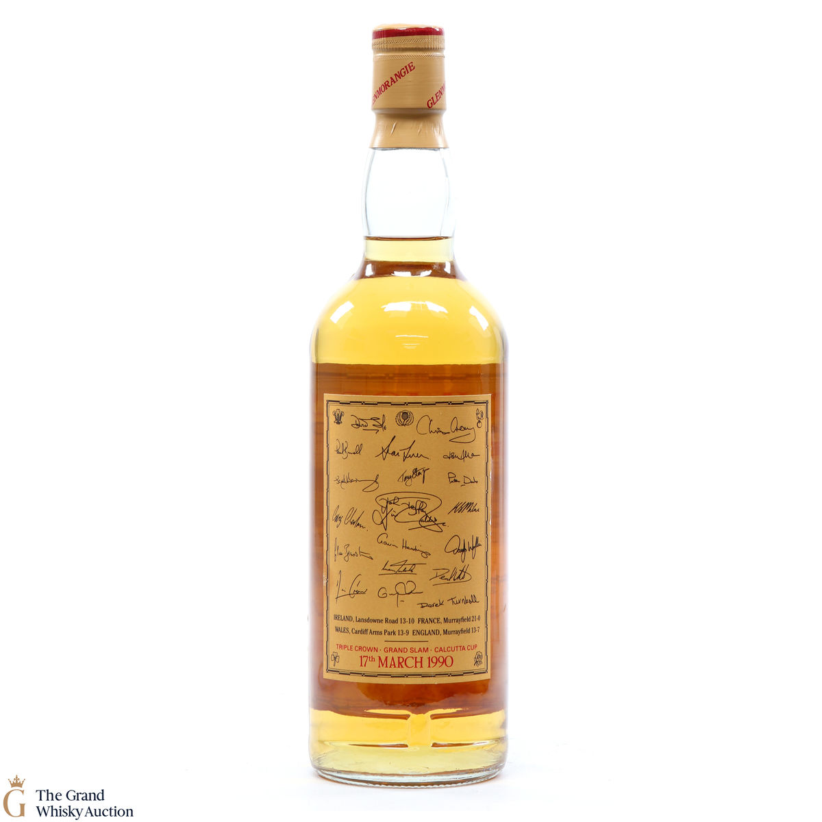 This bottle of Glenmorangie 10 Year Old was released in celebration of the Scottish Rugby Team's Grand Slam win in 1990 - the victory took place on 17th March 1990 and this is detailed on the neck label.