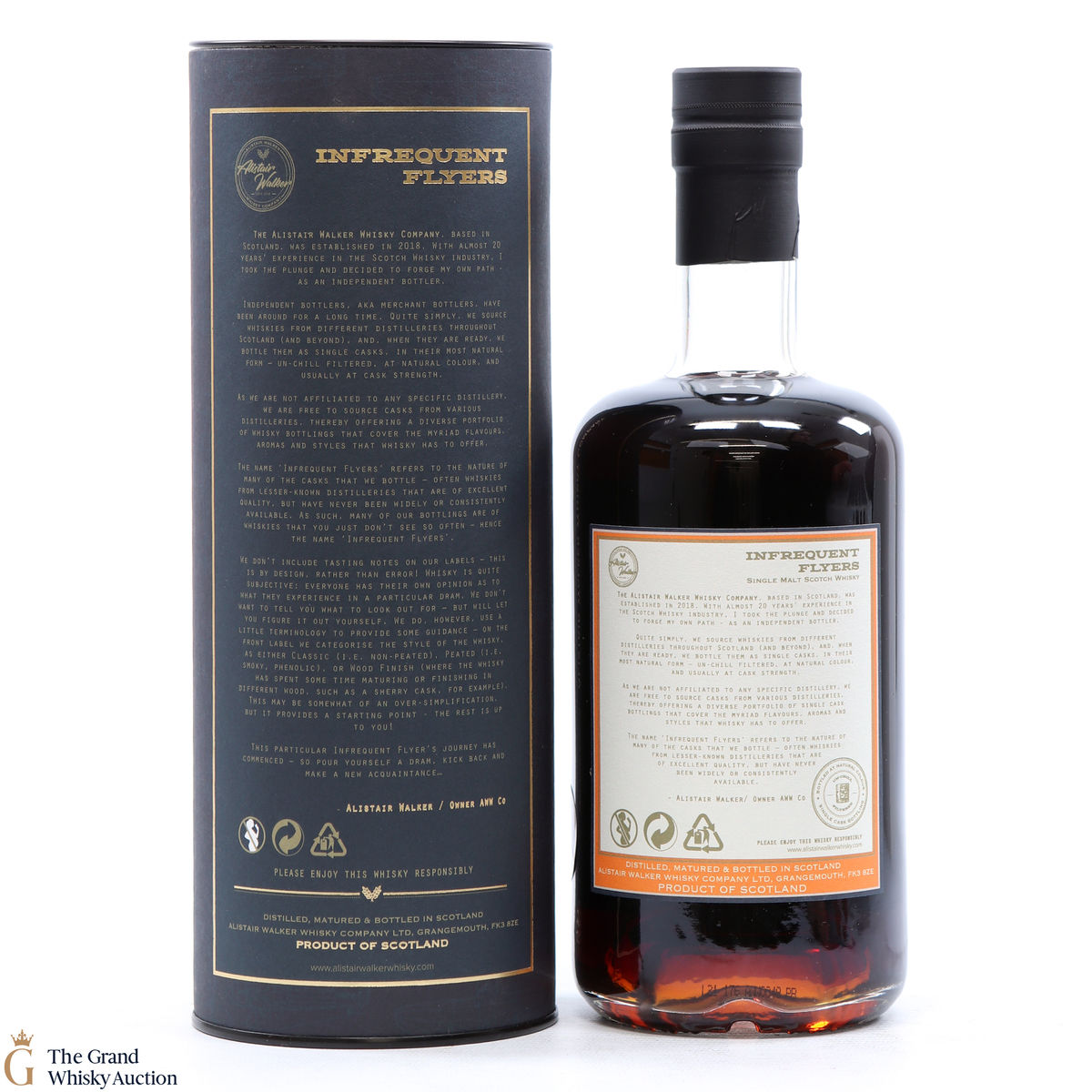 Due to the various ages of bottles and their seals, the condition of liquid is at the buyer's discretion and no claim can be lodged against failure/leakage in transit. Loss and breakage cover is available at 3% of the hammer price as standard. If the lot is not insured, no claim can be lodged against the courier or The Grand Whisky Auction for breakage or loss in transit.