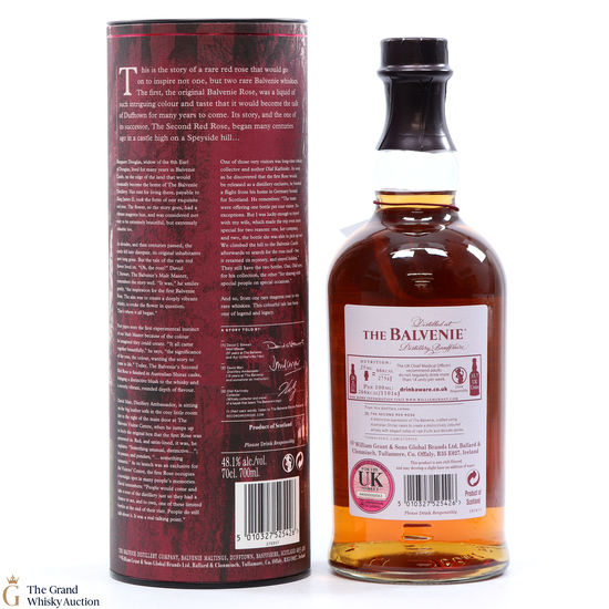 Inspired by the history of Balvenie Castle, this single malt was matured for a total of 21 years, being finished in Australian Shiraz Casks. The story of David C Stewart has created two extraordinary red roses, this is the second red rose and story number 5 in the series. Bottled at 48.1% ABV.