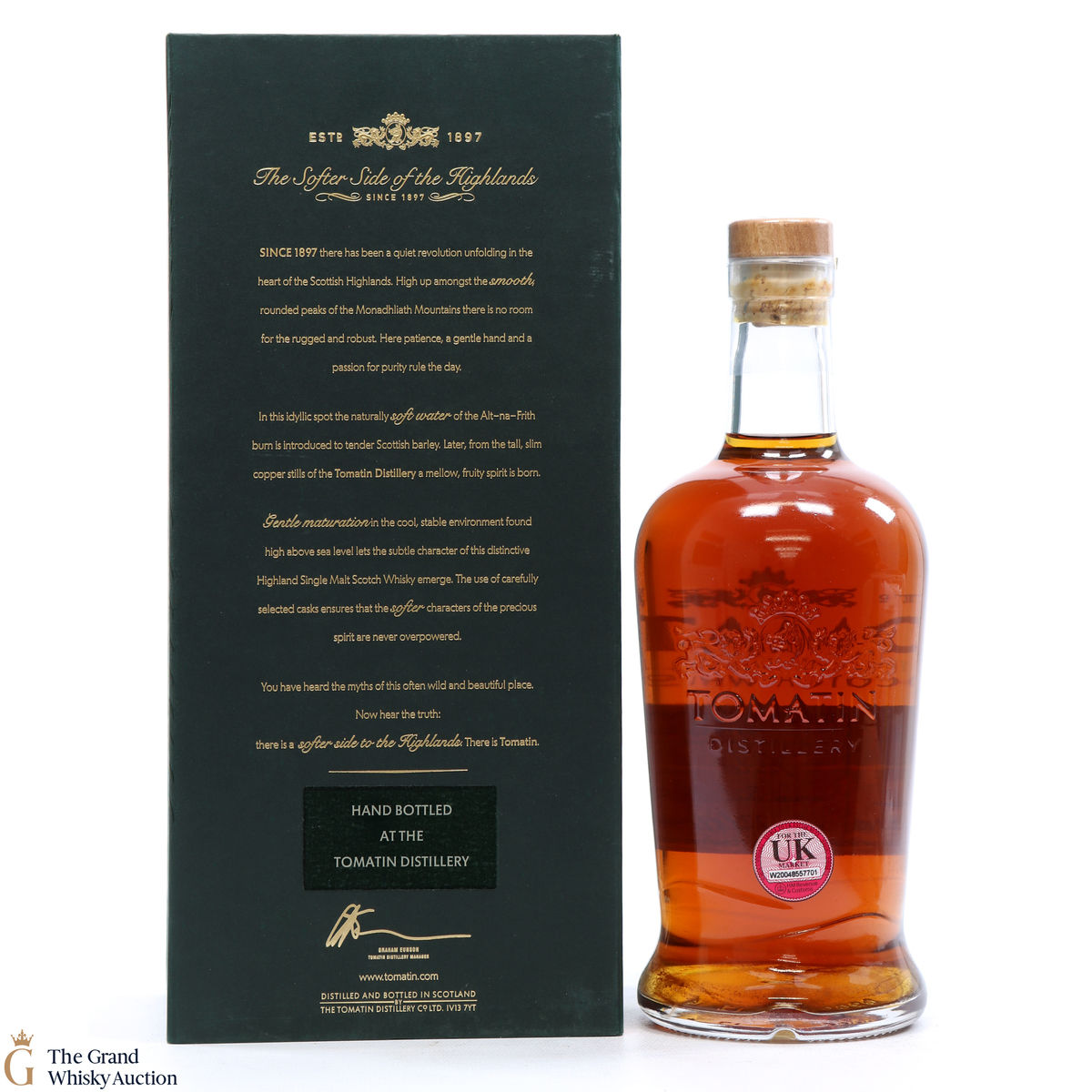 Distilled on the 30th November 2001 at the Highland Distillery Tomatin, this single malt was matured in PX cask #34869. Released as a distillery exclusive.