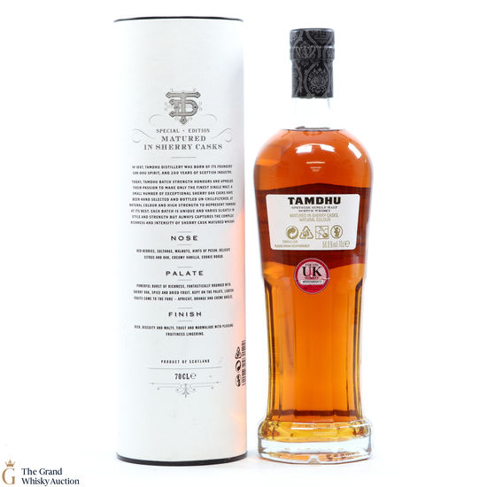 This lot includes a 70cl of Tamdhu Speyside Single Malt Scotch Whisky; Batch 1 of the annual edition of Tamdhu's multi-award-winning Batch Strength series. The series reflects Tamdhu’s commitment to producing ‘only the best’ sherry cask matured whisky.