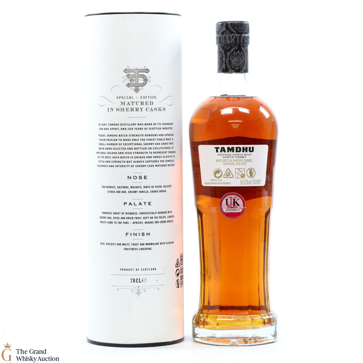 This lot includes a 70cl of Tamdhu Speyside Single Malt Scotch Whisky; Batch 1 of the annual edition of Tamdhu's multi-award-winning Batch Strength series. The series reflects Tamdhu’s commitment to producing ‘only the best’ sherry cask matured whisky.