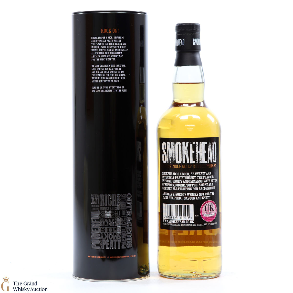 A vigorous single malt whisky hailing from Islay. Smokehead single malt is an explosive, heavily peated whisky; not for the faint-hearted! Like the distillers music taste, this whisky is big and bold and loud enough that you can feel it.