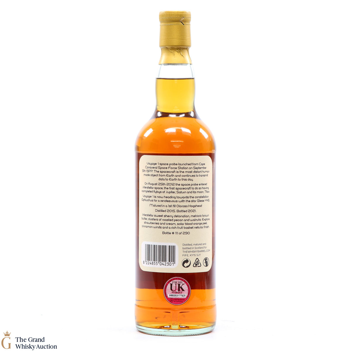 This Dalmunach 5-Year-Old Speyside single malt is the first release of The Grant Tour series. Voyager 1 space probe launched from Cape Canaveral Space Force Station on September 5th 1977 and is now the most distant human-made object and is since the first spacecraft to enter interstellar space. Matured in a 1st fill Oloroso Hogshead and bottled March 2021 at 65.9%. 290 numbered bottles.