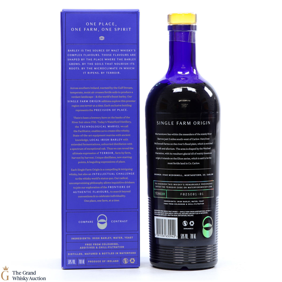 Released as part of Waterford's Single Farm Origin series, the Mortarstown 1.1 was distilled using grain from the Mortarstown farm. Owned and operated by Evan McDonnell, the land is said to be the most fertile land in County Carlow