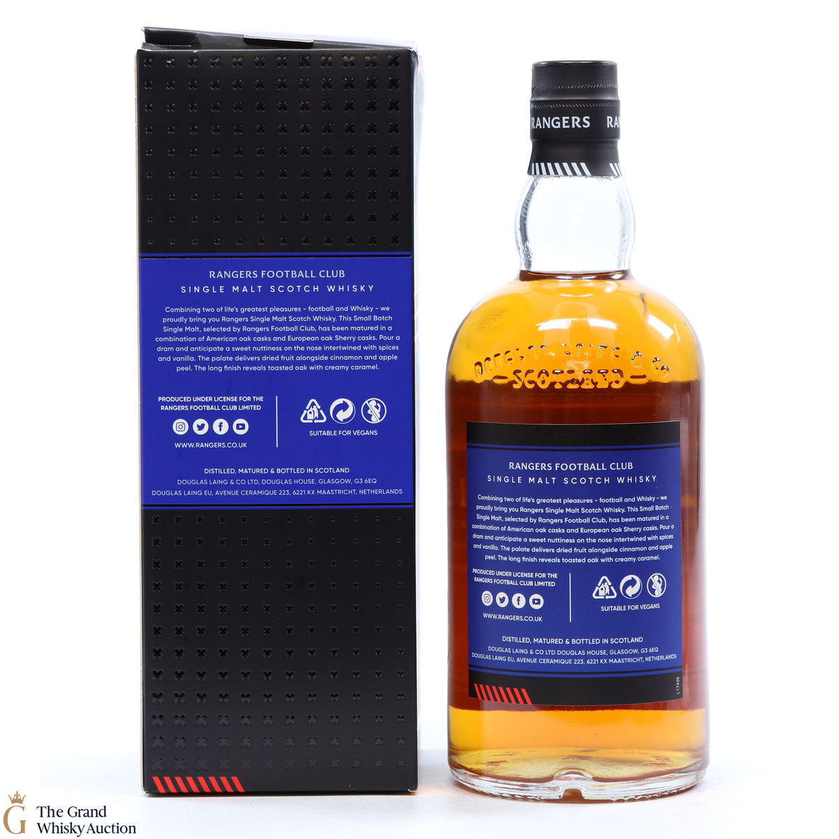 Following a world record-breaking season this small-batch, limited edition single malt was specially selected by Rangers Football Club and bottled by Douglas Laing. Matured in a combination of American oak casks and European oak Sherry casks.