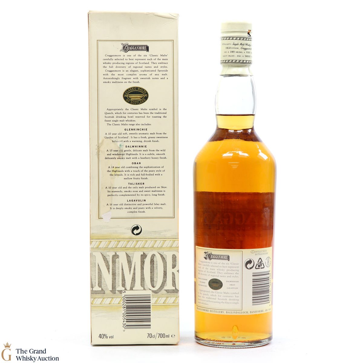 Due to the various ages of bottles and their seals, the condition of liquid is at the buyer's discretion and no claim can be lodged against failure/leakage in transit. Loss and breakage cover is available at 3% of the hammer price as standard. If the lot is not insured, no claim can be lodged against the courier or The Grand Whisky Auction for breakage or loss in transit.