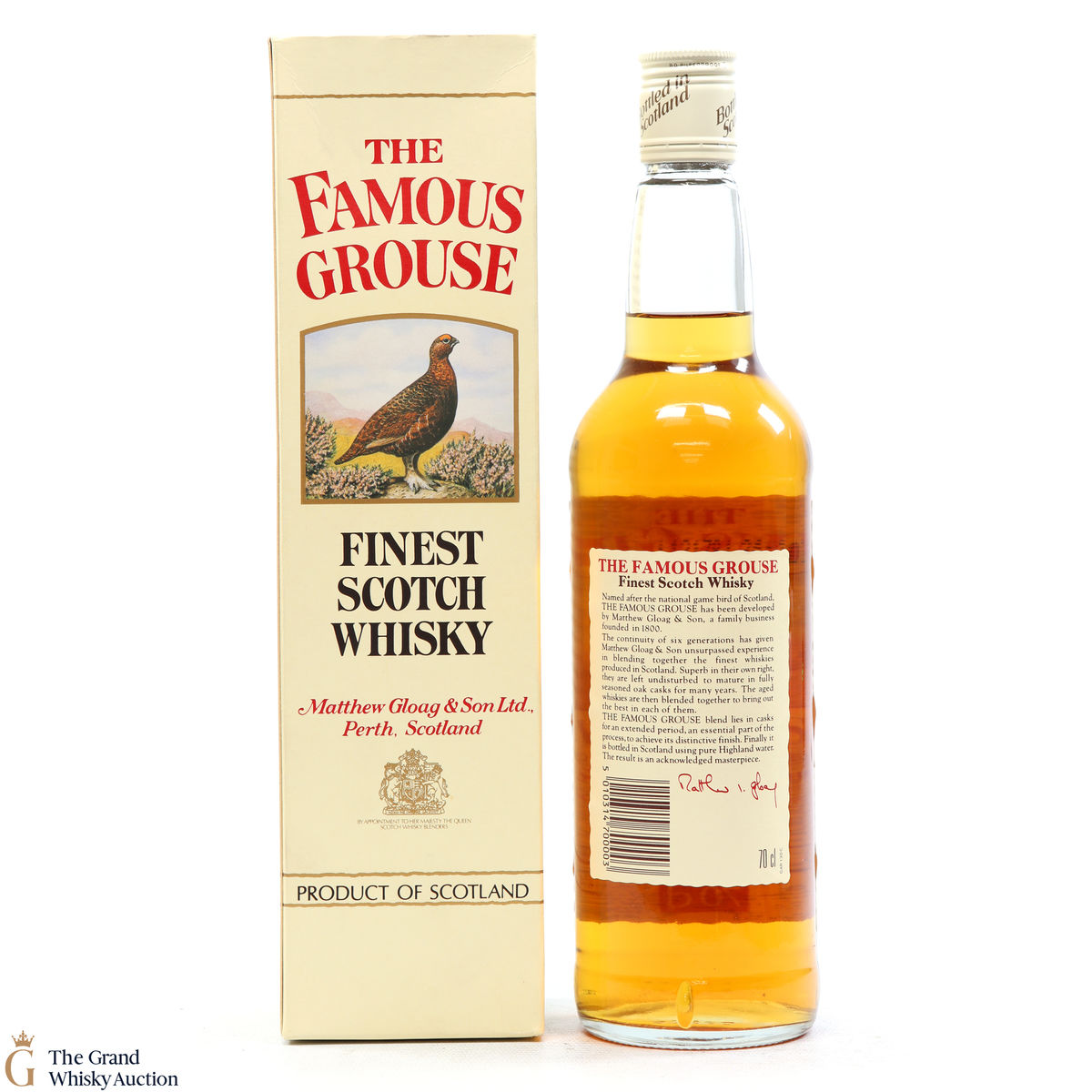 Famous Grouse blended scotch whisky was first produced by Matthew Gloag & Son Ltd in 1896, and is currently produced and owned by The Edrington Group.