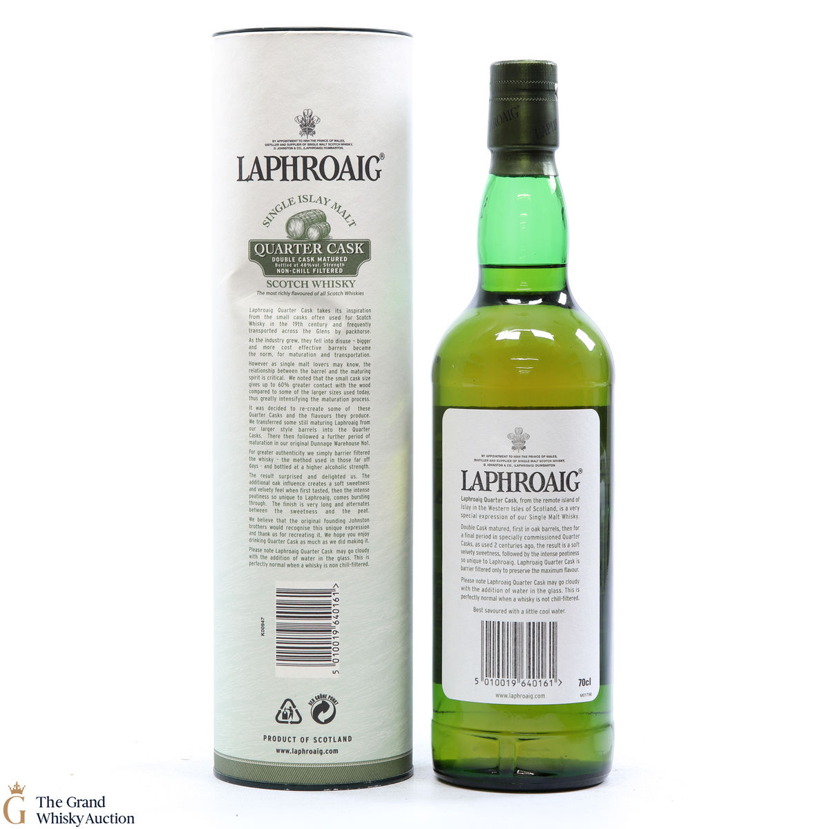 A younger, lively Laphroaig that has had the maturation process speeded up by ageing in quarter casks. As the size of the cask is smaller the maturation doesn't need to be as long. This process has created a soft sweetness and a velvety feel when first tasted, then the intense peatiness so unique to Laphroaig comes bursting through.