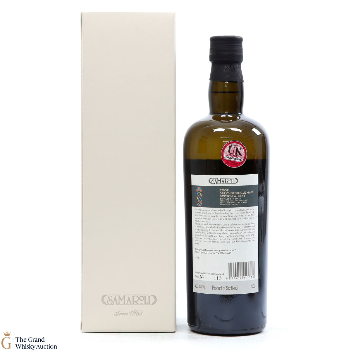 A 2009 Glenallachie, matured in cask 900332 and bottled in 2021 by Samaroli. The single malt spent over 11 years maturing in an oak cask. This is one of just 470 individually numbered bottles produced at 43% abv.