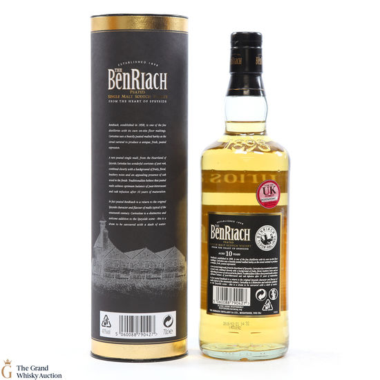 This is an older style bottling of Speyside 10-year-old from Benriach made with ith malted barley dried with peat induced kilns.