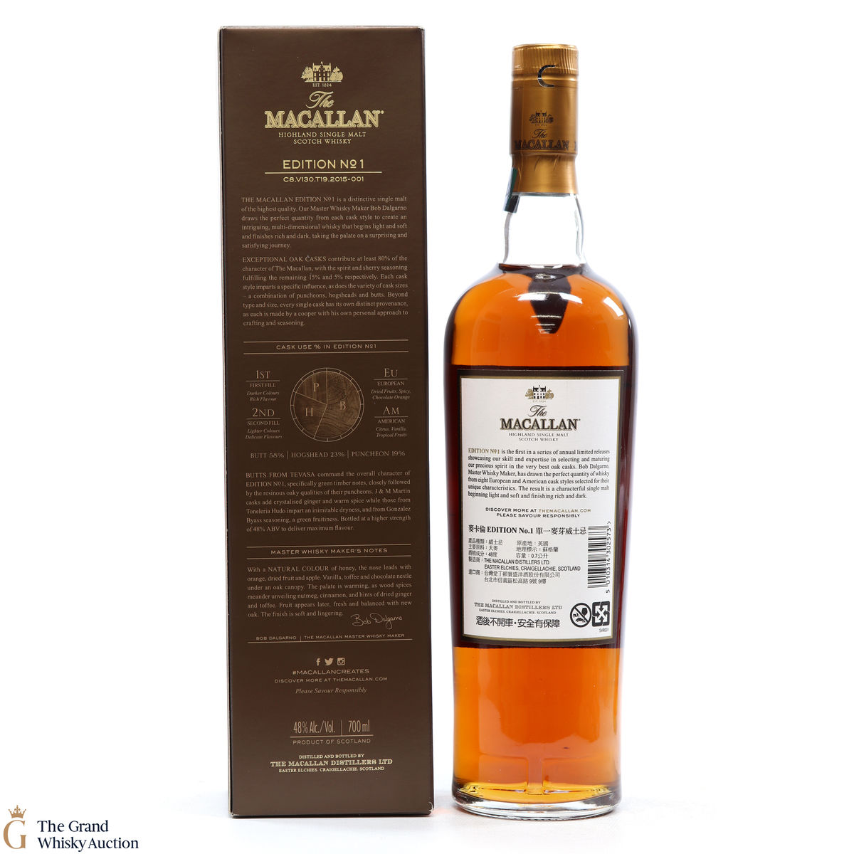The Macallan Edition No. 1 is the debut expression in the Edition Series. This is a limited edition drawn from eight European and American oak cask styles selected for their unique characteristics.