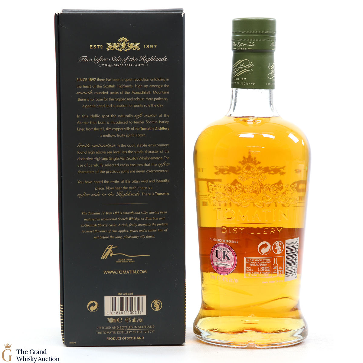 Due to the various ages of bottles and their seals, the condition of liquid is at the buyer's discretion and no claim can be lodged against failure/leakage in transit. Loss and breakage cover is available at 3% of the hammer price as standard. If the lot is not insured, no claim can be lodged against the courier or The Grand Whisky Auction for breakage or loss in transit.