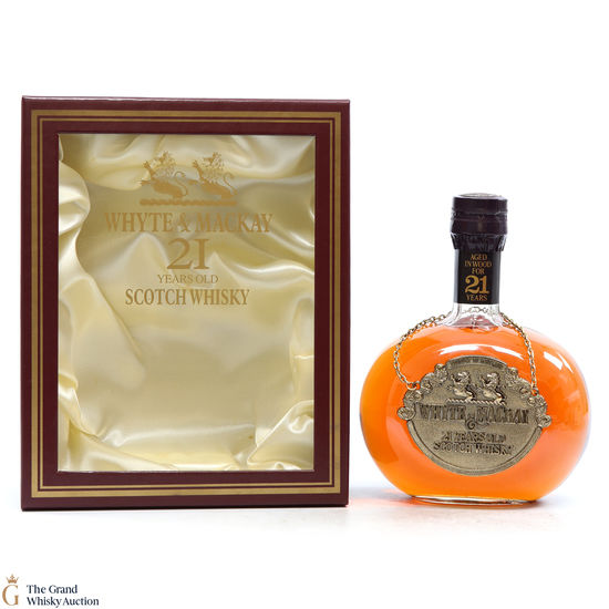 This is a very nicely presented bottle of 21-year-old blended whisky from Whyte & Mackay, which is believed to be produced in the 1980's. The bottle comes with a metallic tag that hangs from the neck of the decanter. It also comes in a beautiful silky lined presentation box.