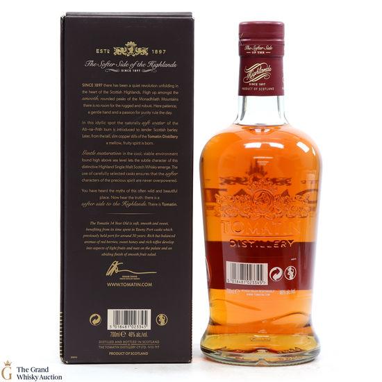 The Tomatin 14 Year Old was introduced to the core range in 2014. Matured in bourbon barrels and selected Port casks, imparting wine-like sweetness to the whisky.