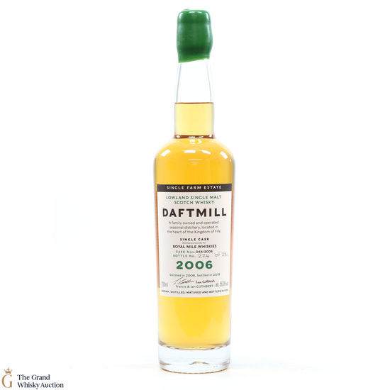 The cask yielded just 231 bottles. This expression has been bottled for Royal Mile Whiskies. Daftmill is a farm distillery. Owned and operated by the Cuthbert family, it only runs in the farm's quiet periods; midsummer and winter, sometimes producing as few as 100 casks per year.