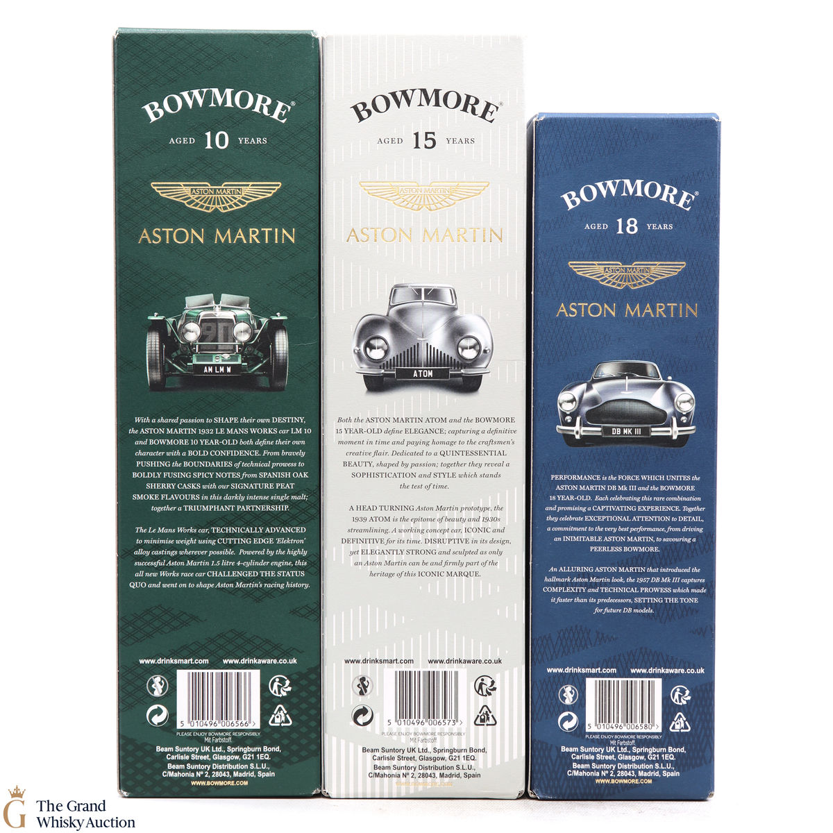 The full collection of the collaboration between Bowmore and Aston Martin, both creating timeless beauty and a lasting legacy. Each edition of the Aston Martin collection features a different car. Included in this lot is edition 1, 2 and 3: