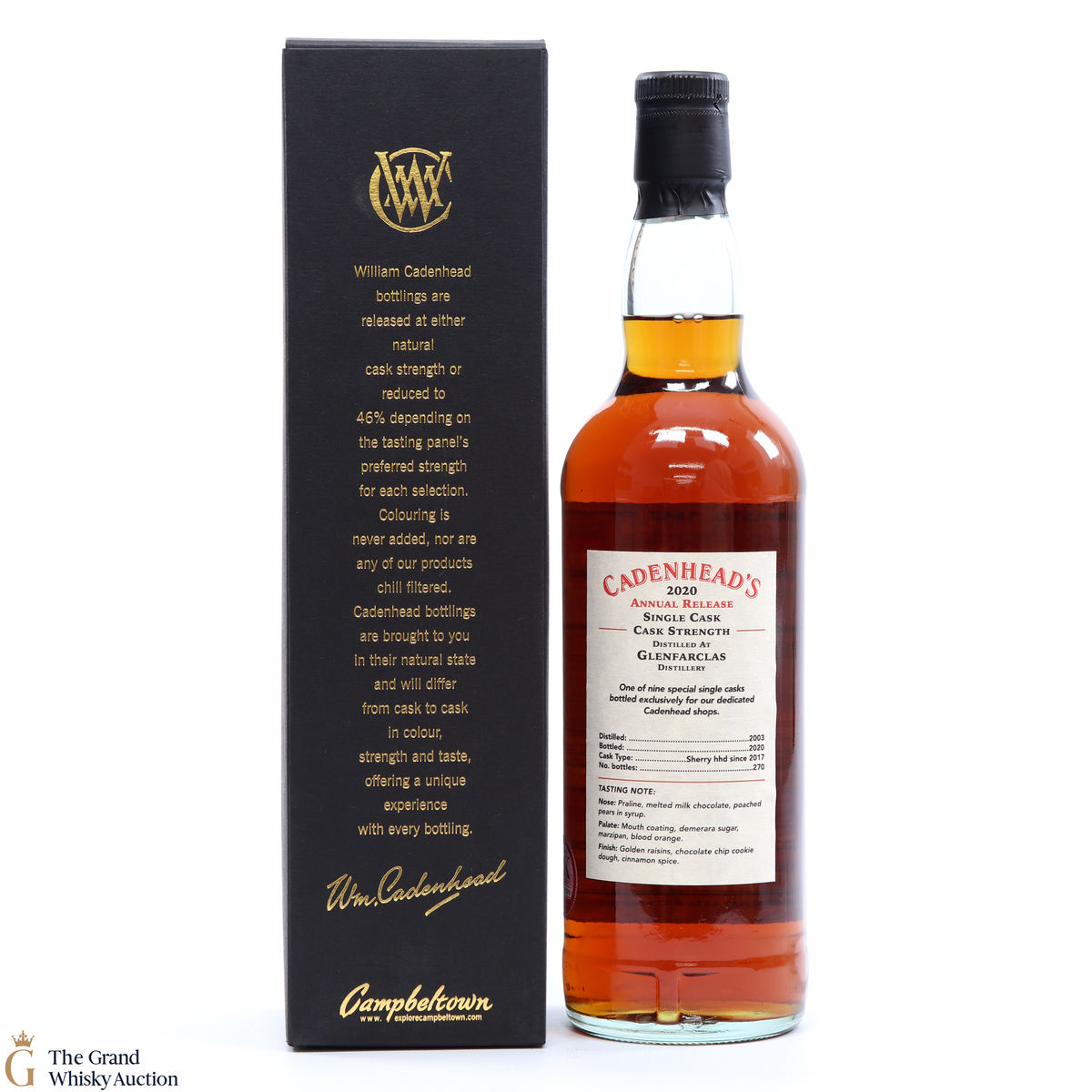 Distilled at Glenfarclas Distillery in 2003, this exclusive Whisky Shop bottling was bottled in 2020 by Cadenhead's. This bottling has been in a sherry hogshead since 2017 and is one of 9 special single casks bottled for the dedicated Cadenhead shops.