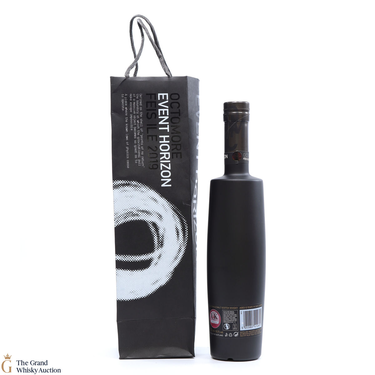 Octomore Event Horizon is the 2019 Fèis Ìle expression from Bruichladdich. It is the oldest Octomore released by the Islay distillery. This is one of only 2,000 bottles of Octomore Event Horizon which were released exclusively at the distillery during the festival and have already sold out completely.