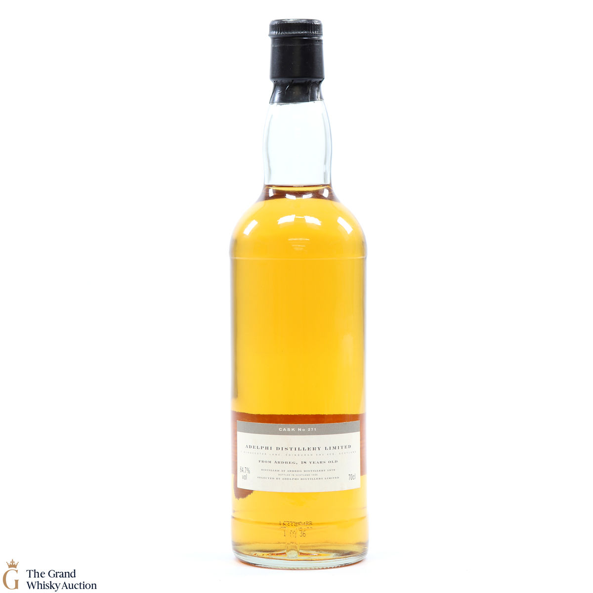 This Ardbeg was matured for 18 years in cask #271 before being bottled at the cask strength of 64.7% ABV by independent bottlers Adelphi.