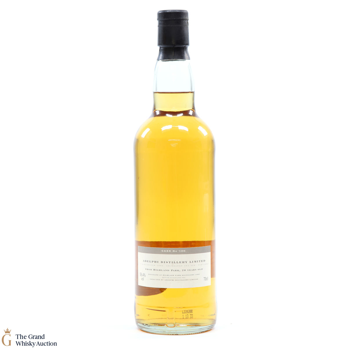 Distilled at the famous Highland Park Distillery in Orkney, this single malt was matured for 20 years in cask number 1286 before being bottled at 56.4% ABV by independent bottlers Adelphi.