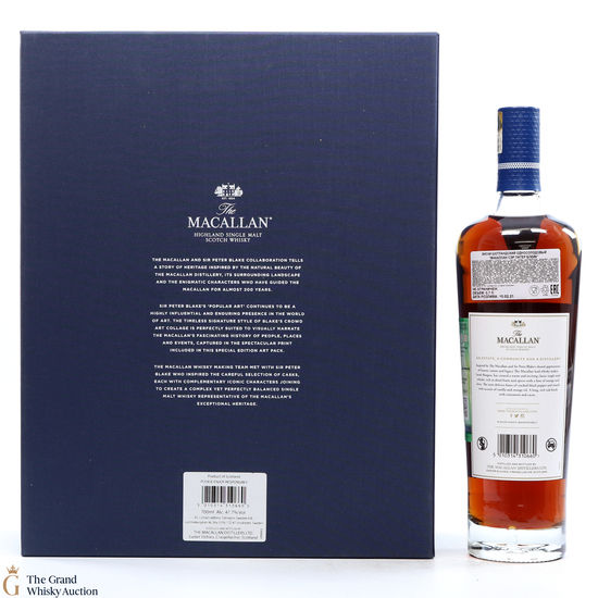 Part of The Anecdotes of Ages Collection, this is an extraordinary art and whisky collaboration with Sir Peter Blake. Being the third collaboration between the Macallan Distillery and Sir Peter Blake, this single malt was created to commemorate Sir Peter Blake's visit to The Macallan Estate. An Estate, a Community and a Distillery tells the story of some of the colourful characters from the distilleries past and present and features a label designed by Sir Peter Blake.