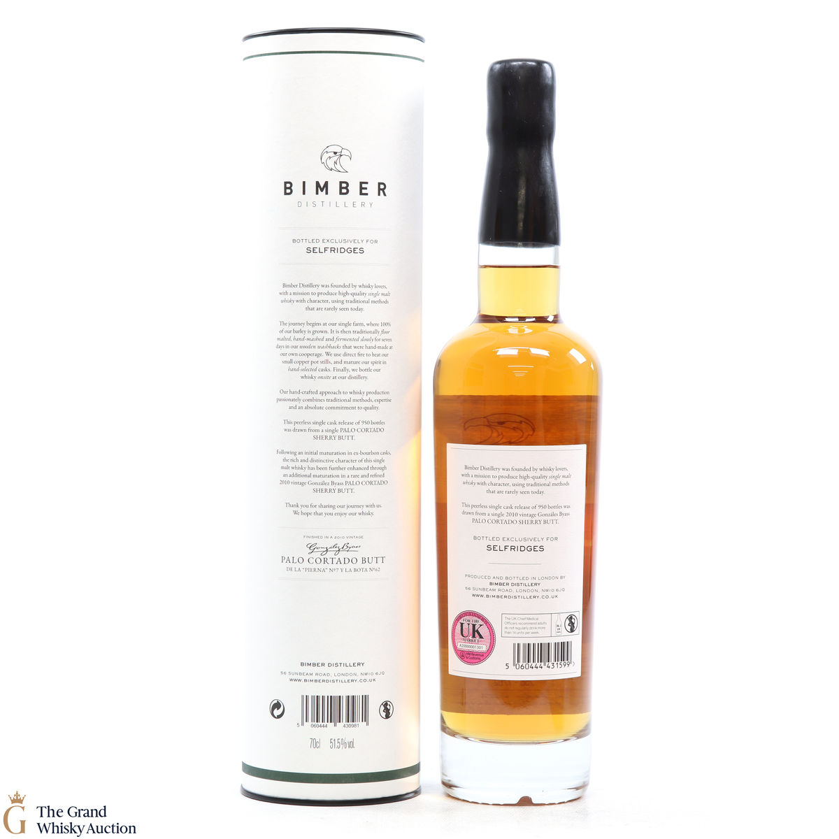 An exclusive partnership between the London distillery and department store Selfridges. This Bimber was made from single farm barley (which was malted at Westminster Maltings) and matured in a single Palo Cortado butt.