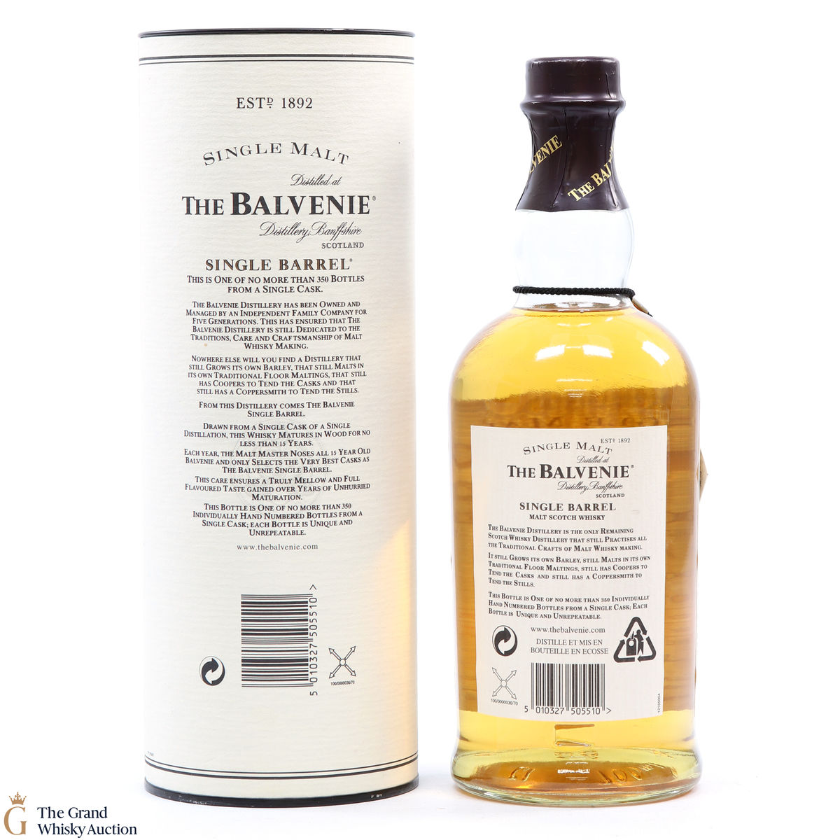 An older edition of Balvenie's classic single barrel series, a 15-year-old single malt, drawn from a single traditional oak whisky cask and bottled by hand.