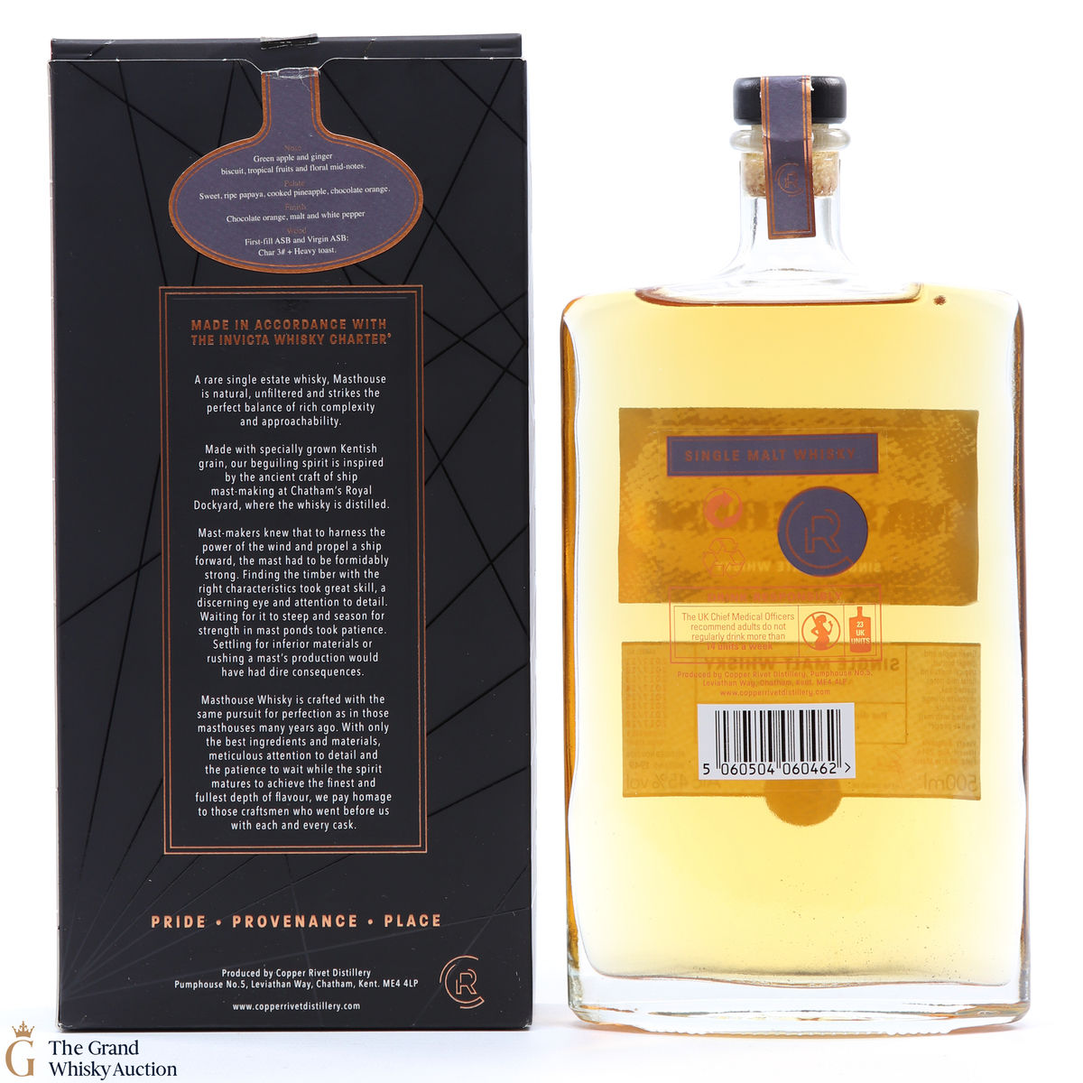 Masthouse Single Malt, made in accordance with the distillery's very own Invicta Whisky Charter. This expression is distilled from Kentish malted barley from the nearby Isle of Sheppey, and was aged in a combination of ex-bourbon and virgin American white oak barrels.
