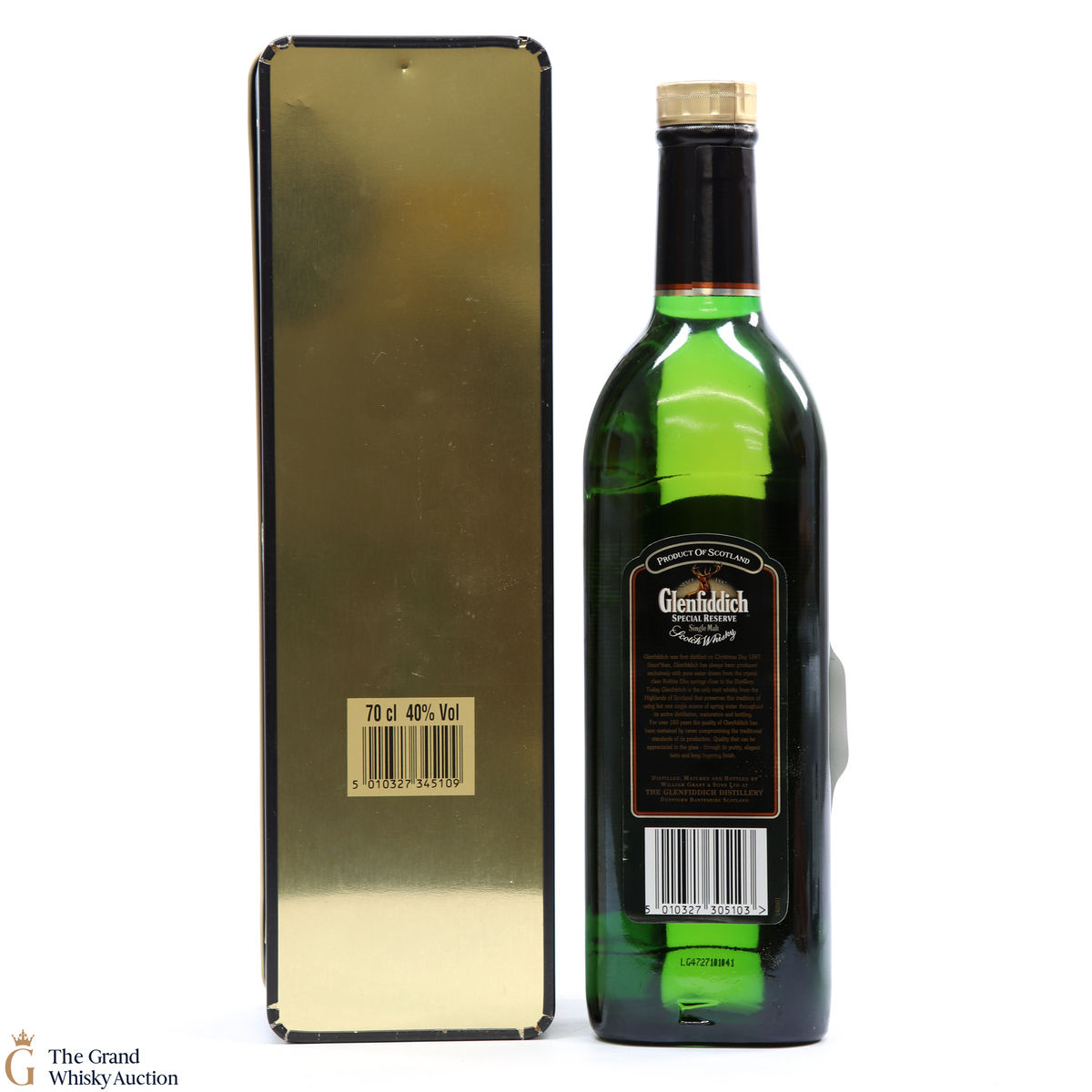 A collectable Glenfiddich single malt Scotch whisky from the 1980s in a Clans Of The Scottish Highlands presentation tin featuring Clan Montgomerie